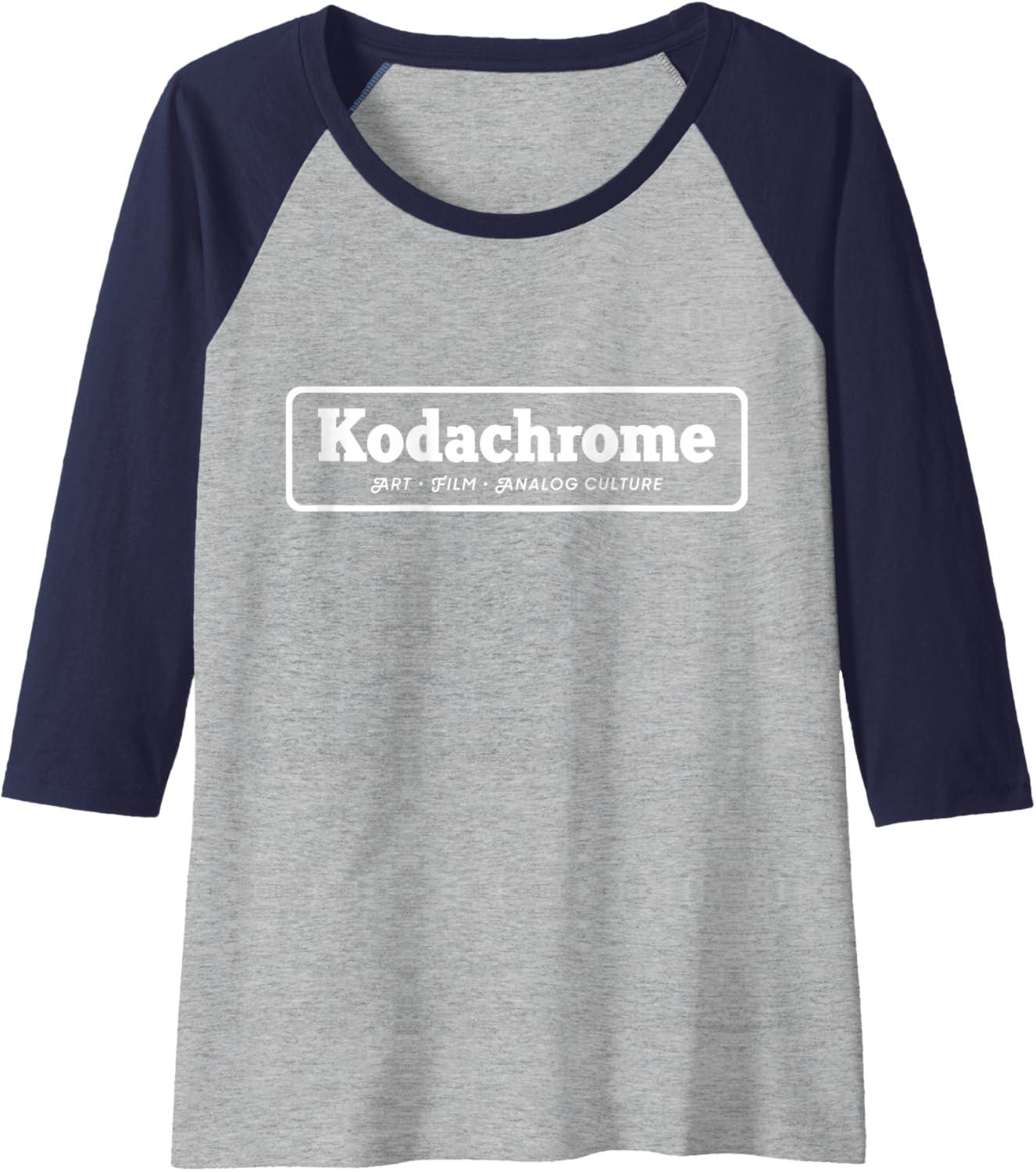 imageKodachrome Logo  White Raglan Baseball TeeBlackAthletic Heather