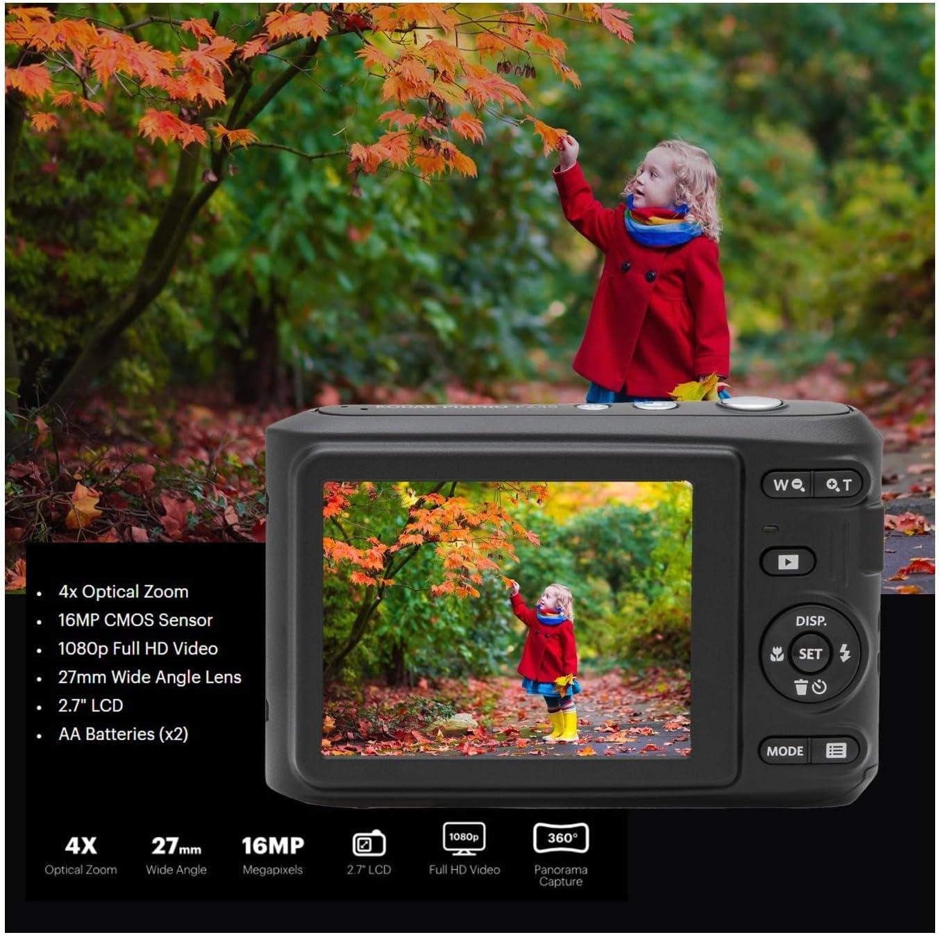 Capture clear photos and 1080p Full HD videos with the Kodak PIXPRO FZ45. This compact point-and-shoot features a 16MP CMOS sensor, 4x optical zoom, 27mm wide-angle lens, and a bright 2.7″ LCD—all powered by easy-to-replace AA batteries.