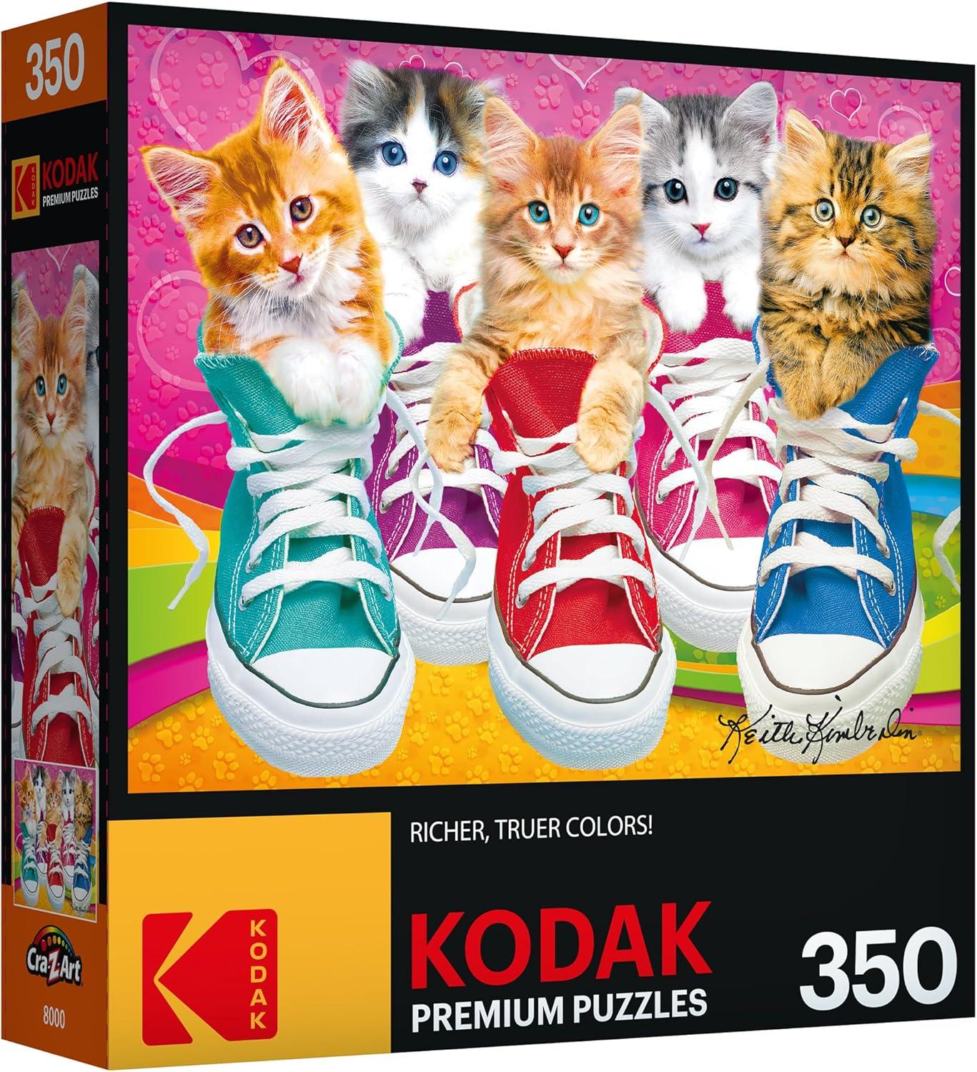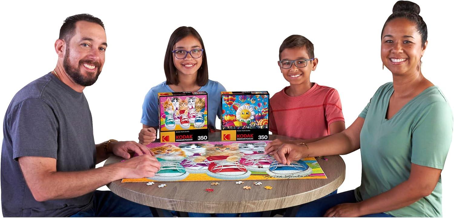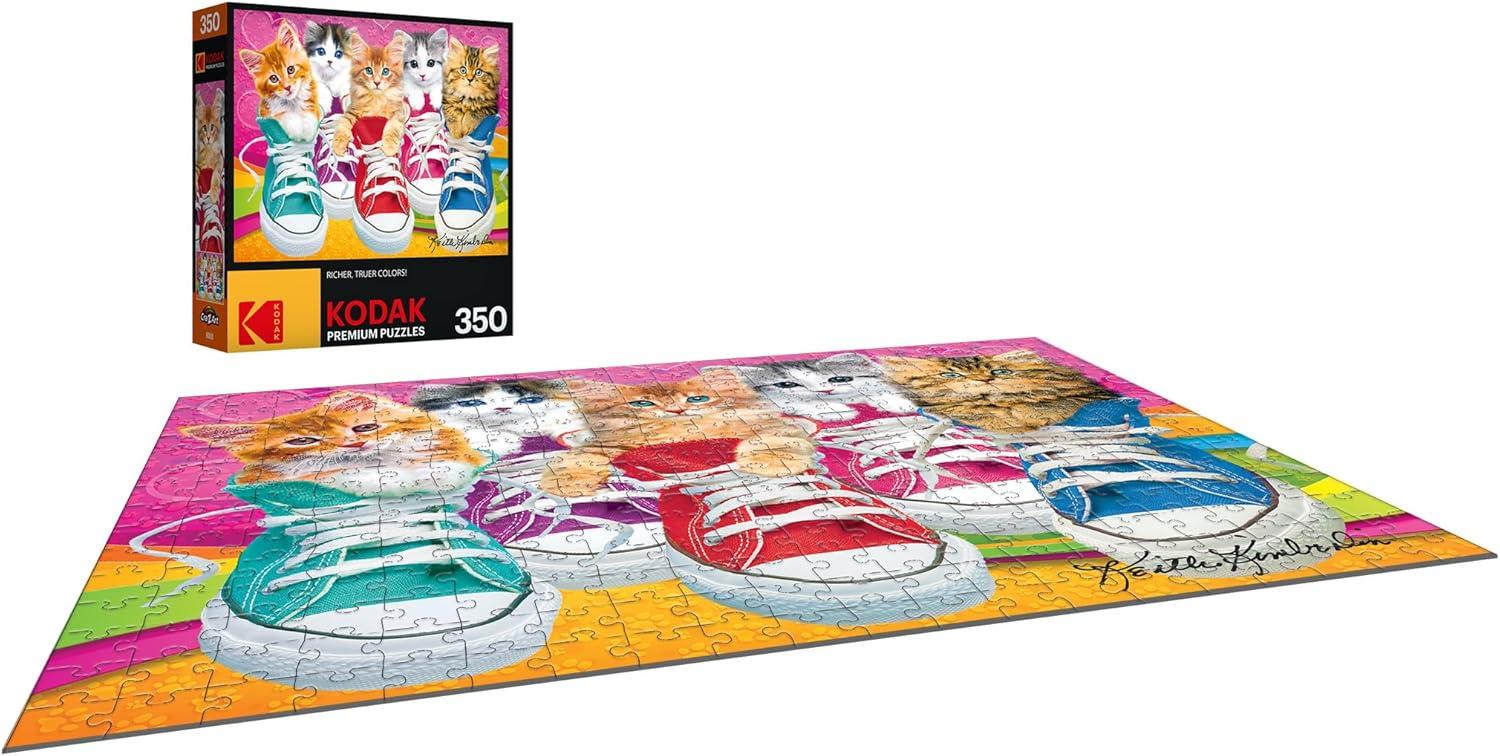 “Puppies on a Picnic” 350pc jigsaw puzzle. KODAK Premium puzzles represent the highest quality imagery and puzzles available today. These are the brightest, richest, most colorful puzzles. KODAK puzzles are durable and super satisfying to assemble. Bonus puzzle poster included.