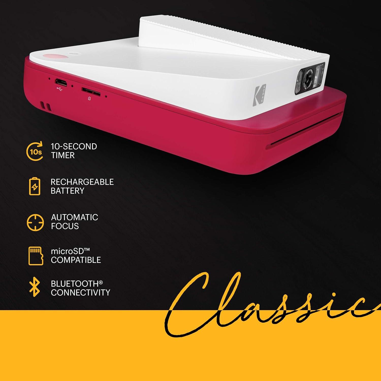 Zink KODAK Smile Classic Digital Instant Camera for 3.5 x 4.25 Zink Photo Paper - Bluetooth, 16MP Pictures (Red)(Red)